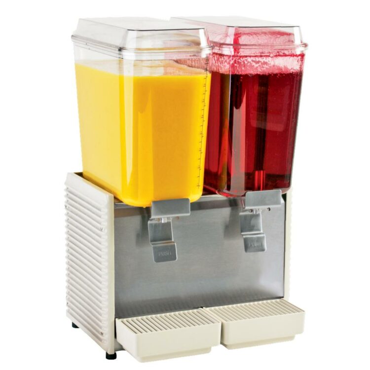 - Appealing cold drink dispenser equipped with 2 bowls, 18 litres each