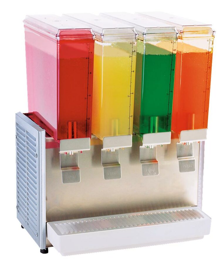 - Appealing cold drink dispenser equipped with 4 bowls, 9 litres each
