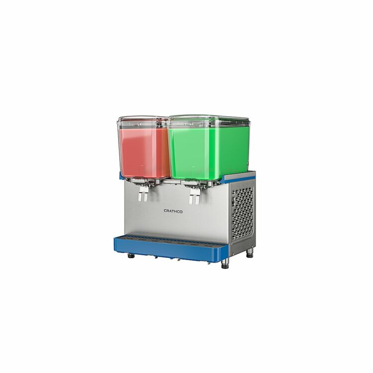 - Pre-mix dispenser with stainless steel base and clear plastic bowls.
